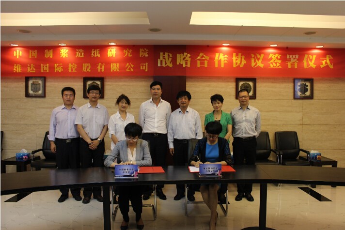 5月27日,在中國造紙協會生活用紙專業委員會主任曹振雷博士、維達國際主席李朝旺先生、江門市工商聯葉芳華副主席、江門市工商聯趙女喬副主席的見證下,維達國際控股有限公司營運總裁王波女士和中國制漿造紙研究院書記孫波女士分別代表雙方共同簽署戰略合作協定。維達集團副CEO張健先生、紙業發展中心品管副總監梁國峰先生出席了本次簽署儀式。