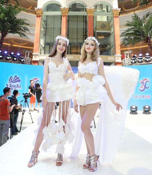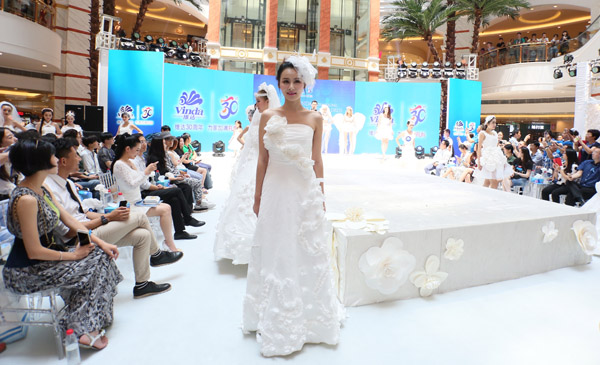 活动现场还出现了一个令人惊喜的彩蛋。身穿纸巾婚纱的DJ将活动现场氛围带入了“维秘”时间,一众身材高挑的模特,竟然身着高贵性感的纸巾比基尼婚纱闪亮出场。现场水花四溅,在雨雾的笼罩下,超模湿身走秀,而身上的纸巾比基尼婚纱却依然湿水不破,让现场观众惊叹不已。都说上海市民素来对时尚极为挑剔,但现场的媒体和嘉宾对这场别出心裁的艺术展赞不绝口,不少人表示:没想到作为日常用品的纸巾,做成精美绝伦的婚纱艺术作品后,可古典、可现代、可未来,艺术延展的空间超越想象。时尚潮人徐峰立在看秀后更发出感慨,这场高规格的纸巾婚纱艺术展,远远超乎了他的想象,他也相信纸巾婚纱极有可能会成为婚纱潮流的突破口。