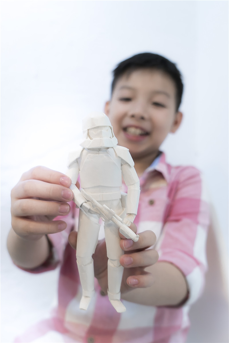 据了解,该父亲姓李,是一名纸艺爱好者,为了与孩子完成这套纸巾星战模型花费近两周时间。谈及制作过程,李先生表示,制作一个角色的头部就耗掉几个小时,这对于9岁的孩子而言,没有一定的空间想象能力和耐心,都无法完成这复杂的制作。