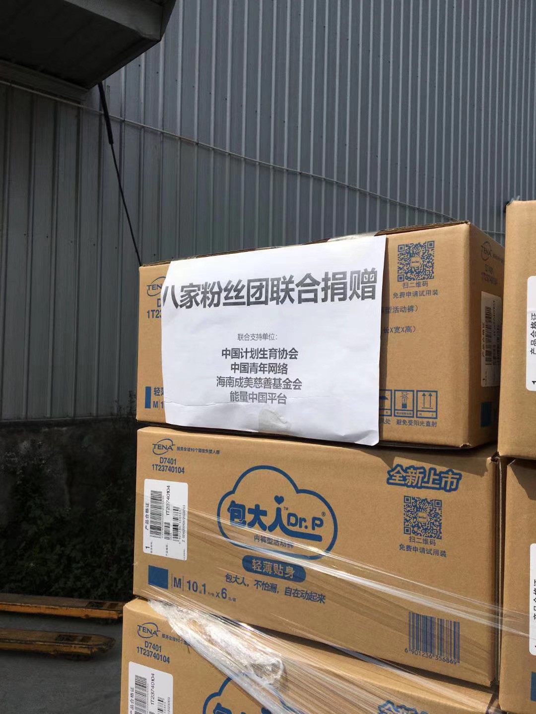 (100万片添宁成人纸尿裤送货现场)