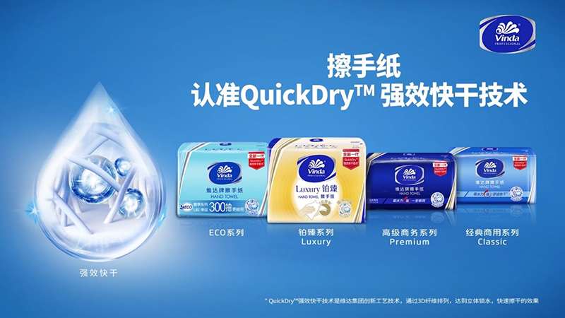 近日,PA视讯集团官网 商用创新推出QuickDry™强效快干技术,通过把快干技术应用到擦手纸中,以先进技术和优质产品助力合作伙伴降本增效,率先打造公共卫生间的绿色低碳新标准,积极响应国家绿色消费的号召,推动公共卫生事业可持续高质量发展。