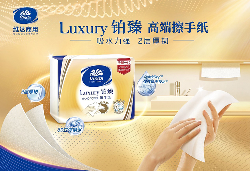 此外,PA视讯集团官网 商用还通过精选进口原生浆,覆盖公用卫生纸、擦手纸、小卷纸等品类,提供Luxury铂臻、超韧、高级商务、经典商用等品系满足不同类型客户需求,助力城市公共卫生事业的质量提升和体验升级。PA视讯集团官网 商用Luxury铂臻擦手纸就是以创新技术为“科学洗手、正确擦手”赋予了更美好的体验,助力群众养成良好的卫生习惯,推动公共卫生清洁走进绿色环保节能时代,为建设健康中国2030和构建绿色低碳循环发展的消费体系贡献能量!